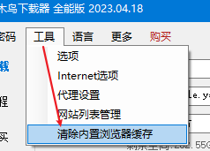 软件主界面就有一个清除缓存的按钮,它的作用是把内存中的缓存清除。再重新开始下载时会重新弹出网页对话框,用户可以进行相关操作。