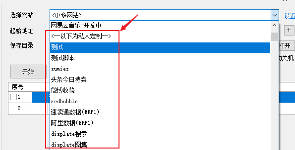 如要下载的网站未出现在软件下拉框中,可以通过以私人订制的方式进行扩充,定制后就可以出现在下拉框供使用了。