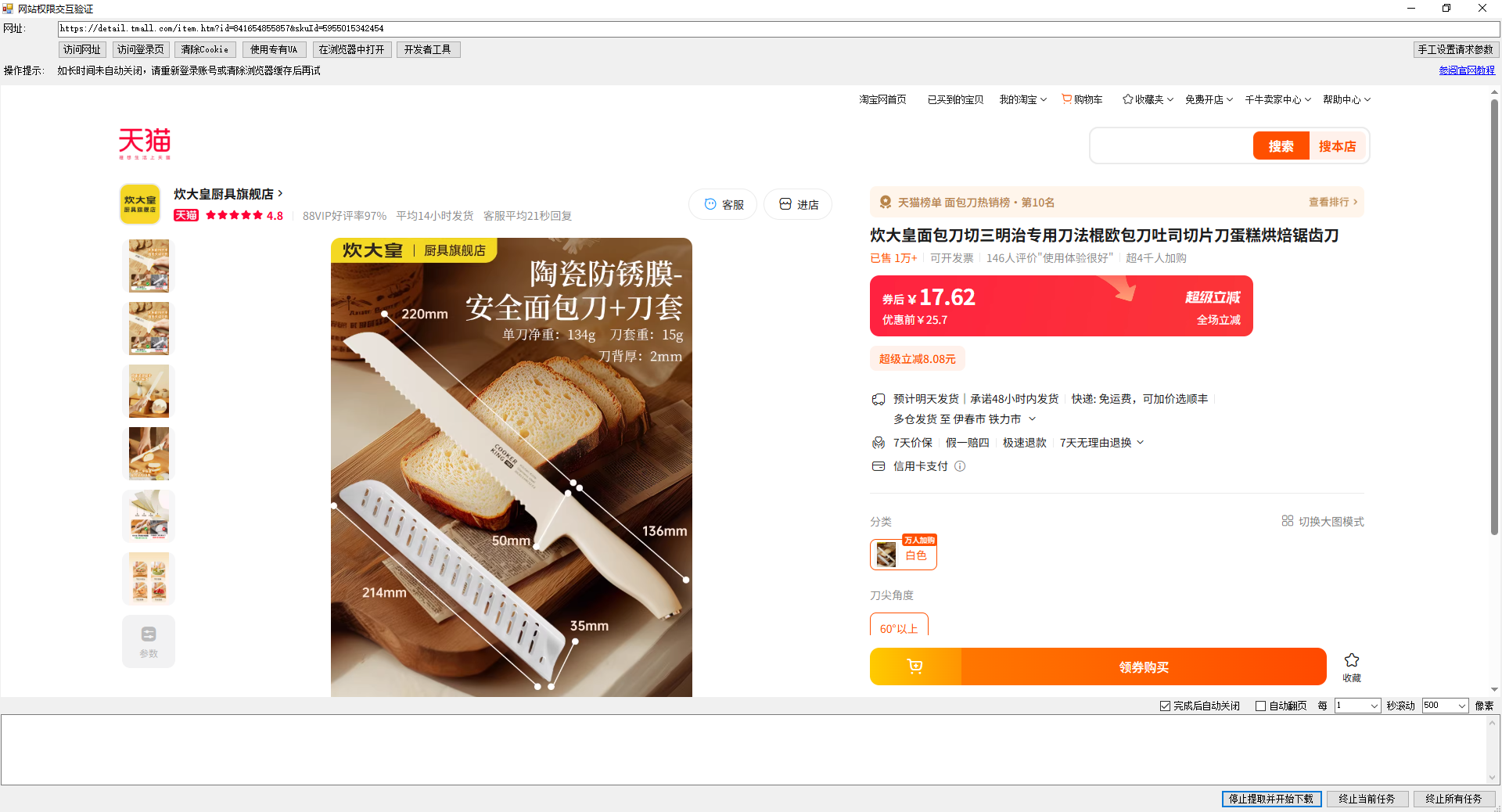 能够正常访问商品页面信息后,无需手动操作,等待软件自动提取内容并自动关闭。