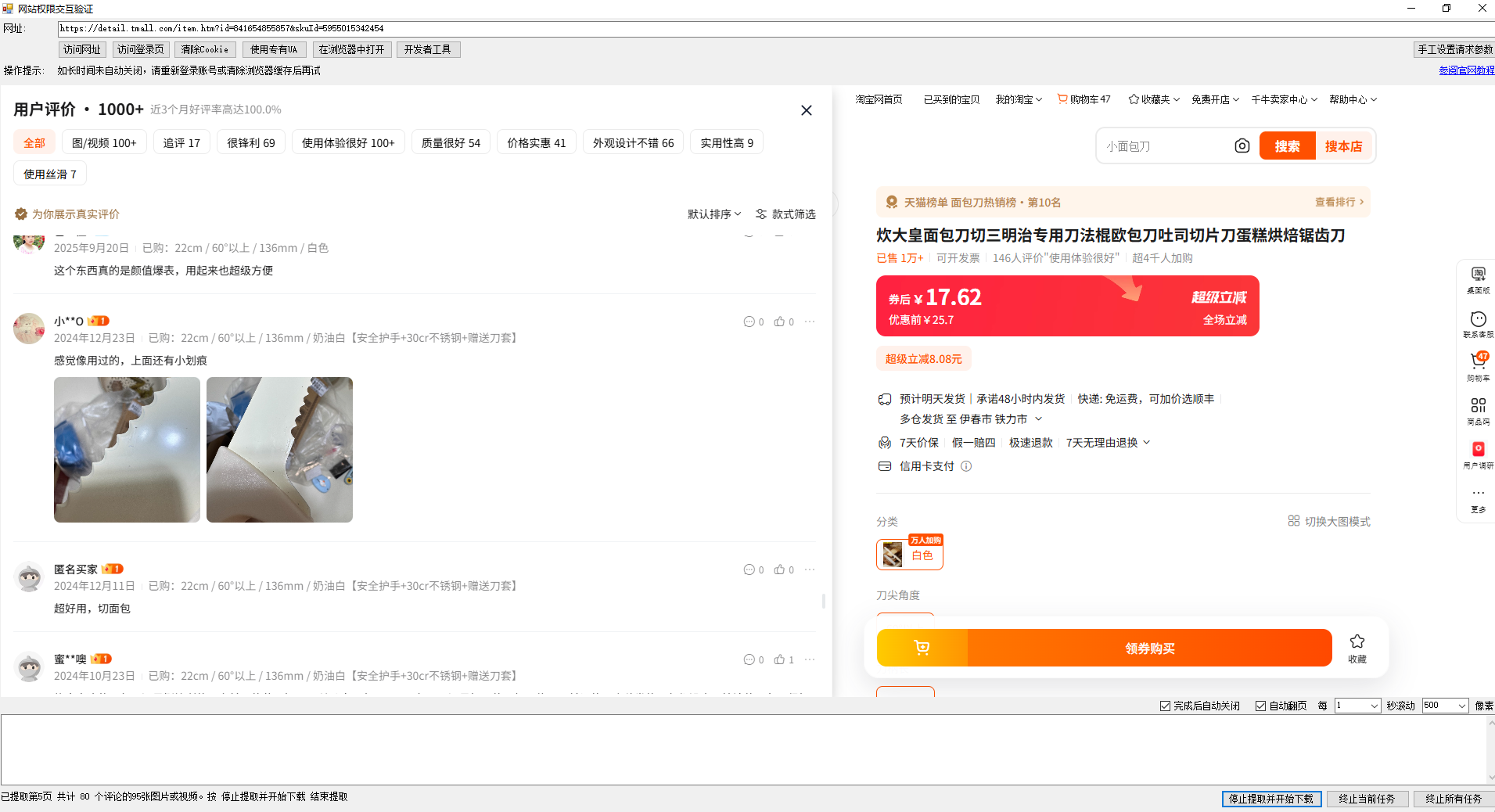 达到用户指定提取的数量或没有评价图后,网页自动关闭。