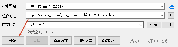 一、打开软件,网站选择 中国供应商商品(2026),起始地址处输入商品网址